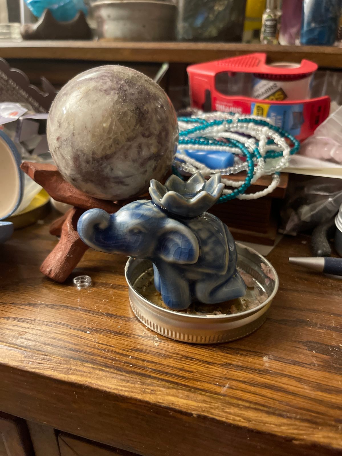 Thailand's Charoensri brings us an adorable incense holder made from ceramic. This tender item features a blue kneeling elephant carrying a lotus flower on its back. Elephants are fascinating creatures often related to wisdom.