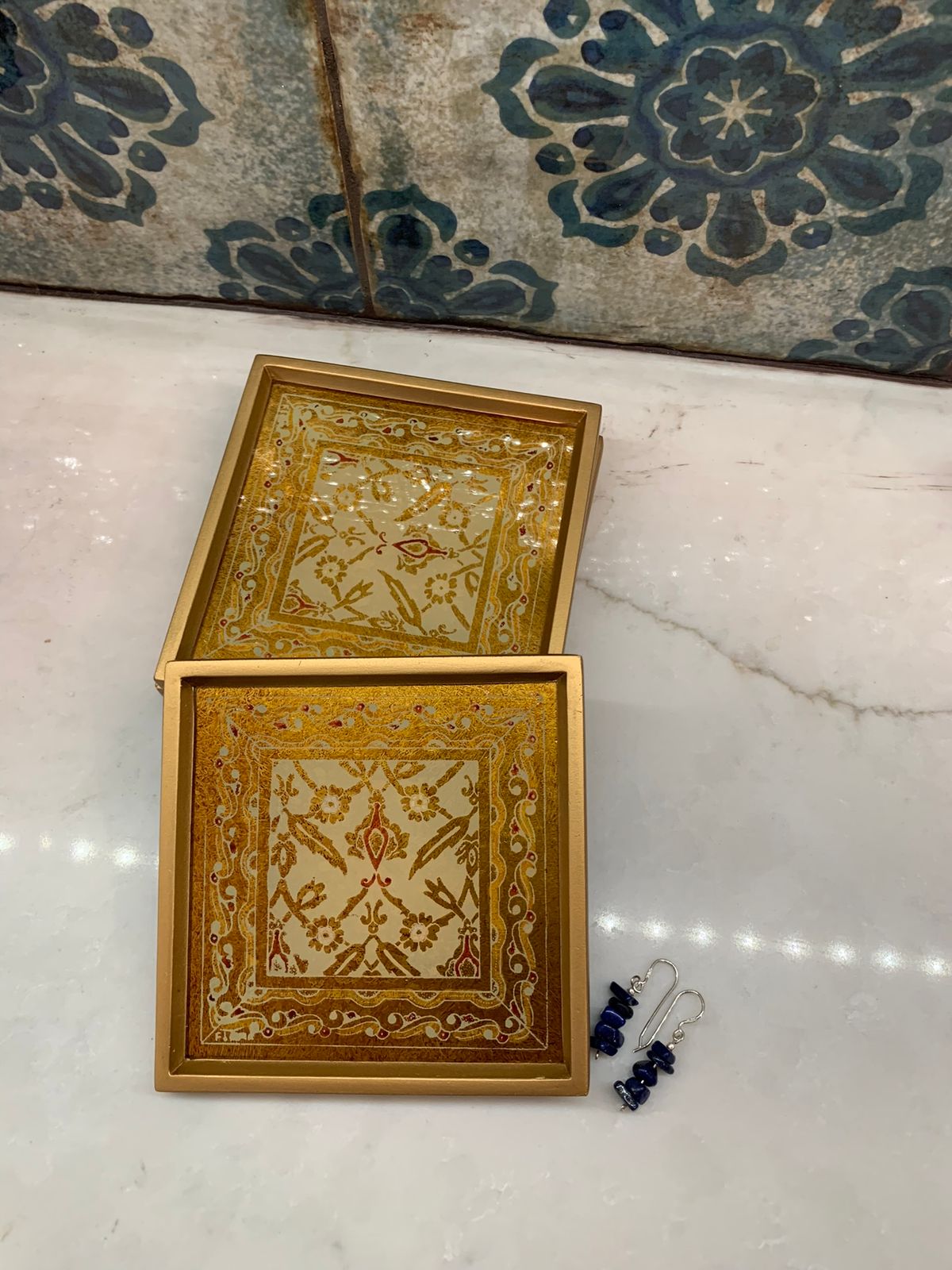Using her work to carry on the artisanal traditions of Peru, Flora Polo presents a set of four coasters. Crafted of wood, each coaster features a glass panel with gold-tone floral designs that are painted by hand. This set of reverse painted glass bar accessories adds a luxurious touch to any home.