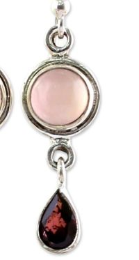 Over one carat of teardrop-shaped garnet stones hang below round dyed pink chalcedony in this pair of dangle earrings designed by India's Neeru Goel. Handcrafted sterling silver bezels surround the stones for a truly beautiful look.