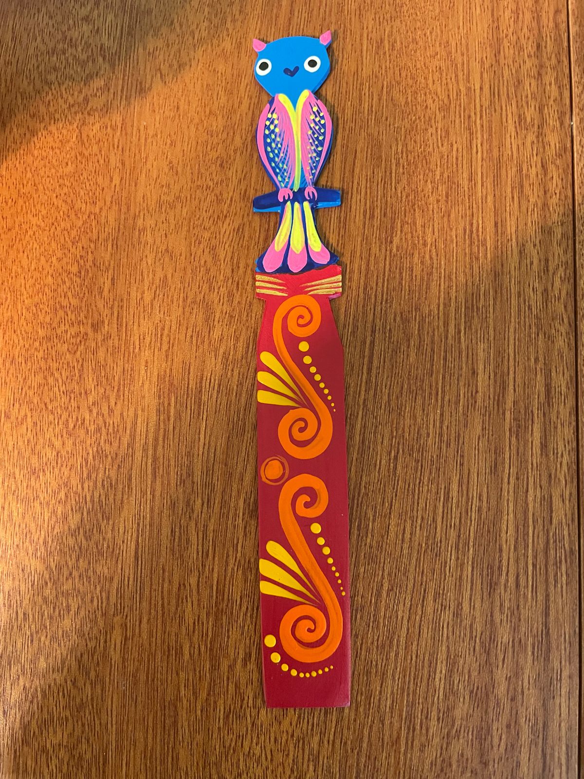Hand Crafted Mexican Copal Wood Bookmark with Tropical Owl - Reading Owl