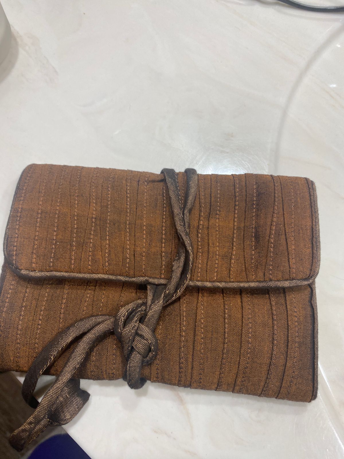 Hand Woven Silk and Rayon Blend Thai Jewelry Roll in Russet - Enchanted Journey in Russet