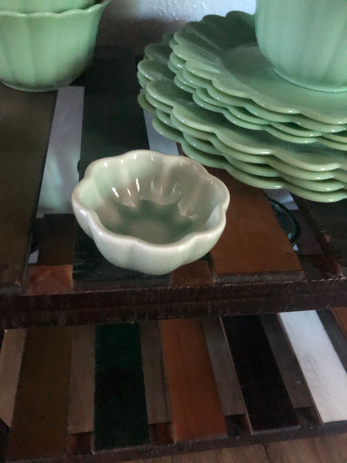 Handcrafted Celadon Ceramic Bowl - Flower Bloom in Green