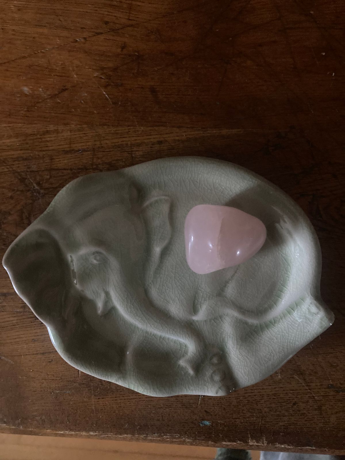 A beautifully-detailed elephant rests peacefully in this plate from Thailand's Duangkamol. The plate is created using time-honored celadon ceramic techniques, and finished with the characteristic pale green crackled glaze. Display it as a unique home accent, or use the food-safe plate for small tidbits.