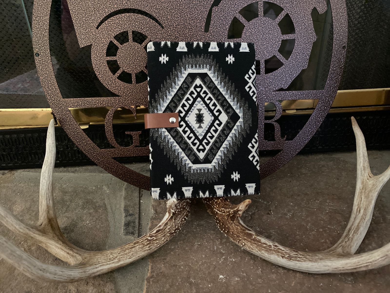 Scribble your thoughts in this wonderful, handcrafted journal from India's Anoop Rana. Designed with 58 pages of handmade cotton paper for your dreams and doodles, the journal features a woven cotton cover with a graphic pattern and a leather band that snaps shut with an iron-plated aluminum button.