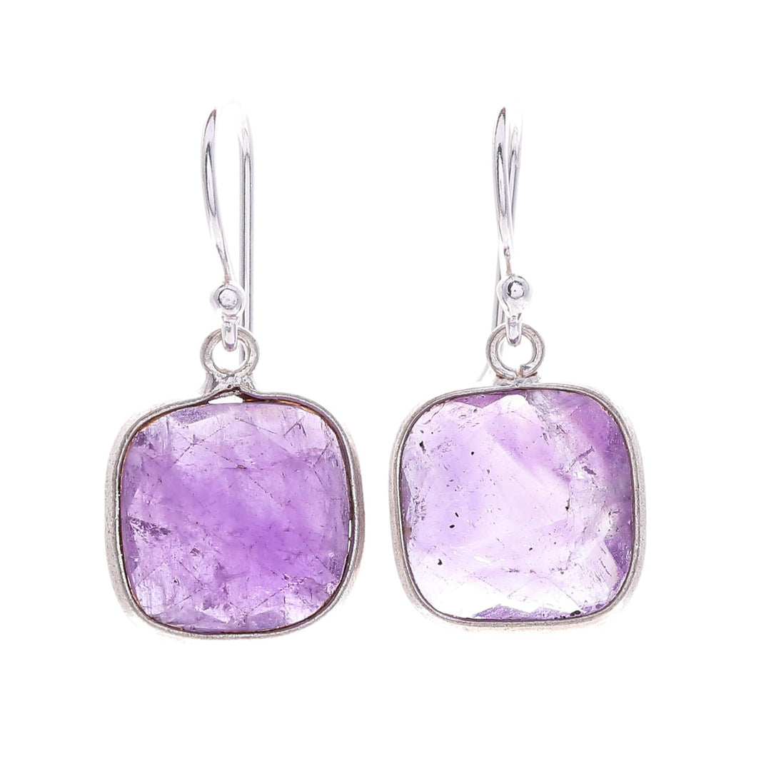 Handcrafted Sterling Silver and Faceted Amethyst Earrings - Lavender Breeze