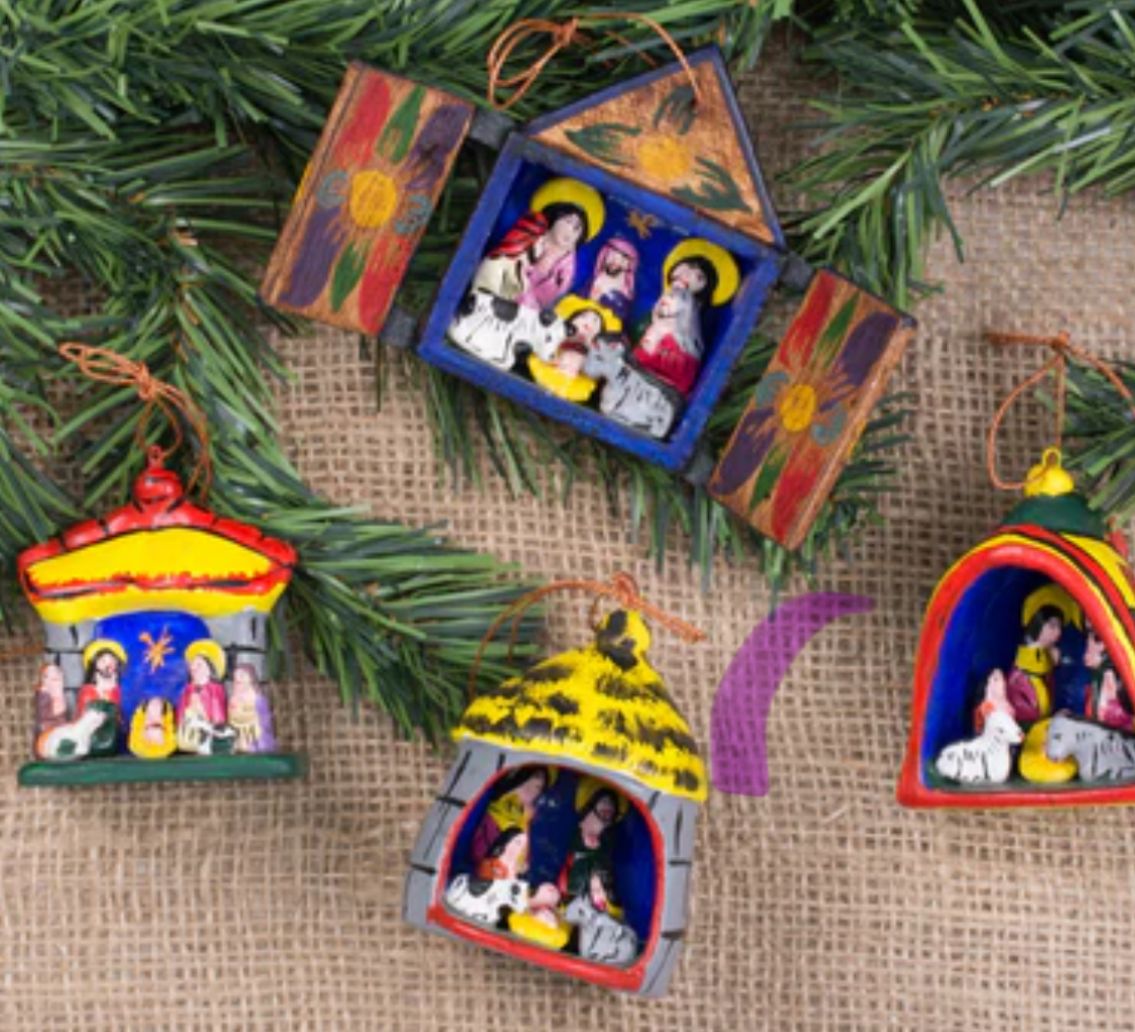 Hand Made Religious Wood Christmas Ornaments (Set of 4) - Nativity