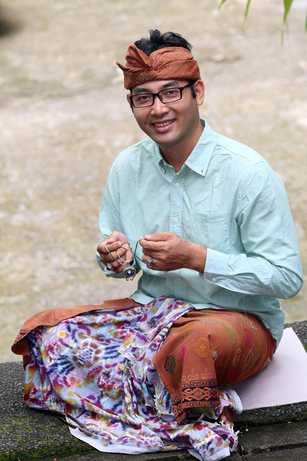 "While many artisans take inspiration from natural beauty of Bali's landscape, flora and fauna, my designs incorporate more traditional aspects of Balinese life, including motifs found in architecture and traditional weaving. My jewelry is special because of its unique designs. They are a beautiful and harmonious combination of traditional patterns and symbols with modern, elegant shapes." The young artisan was chosen to represent Bali in the 2017 Australia Short Course Awards. That same year, he also received the International Business Readiness Short Term Award for jewelry design."