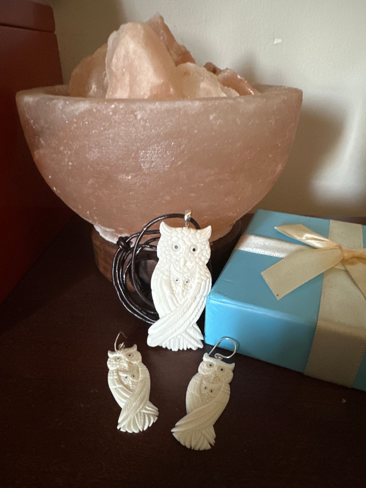 Artisan Crafted Owl Family Pendant on Leather Cord Necklace - White Owl Family
