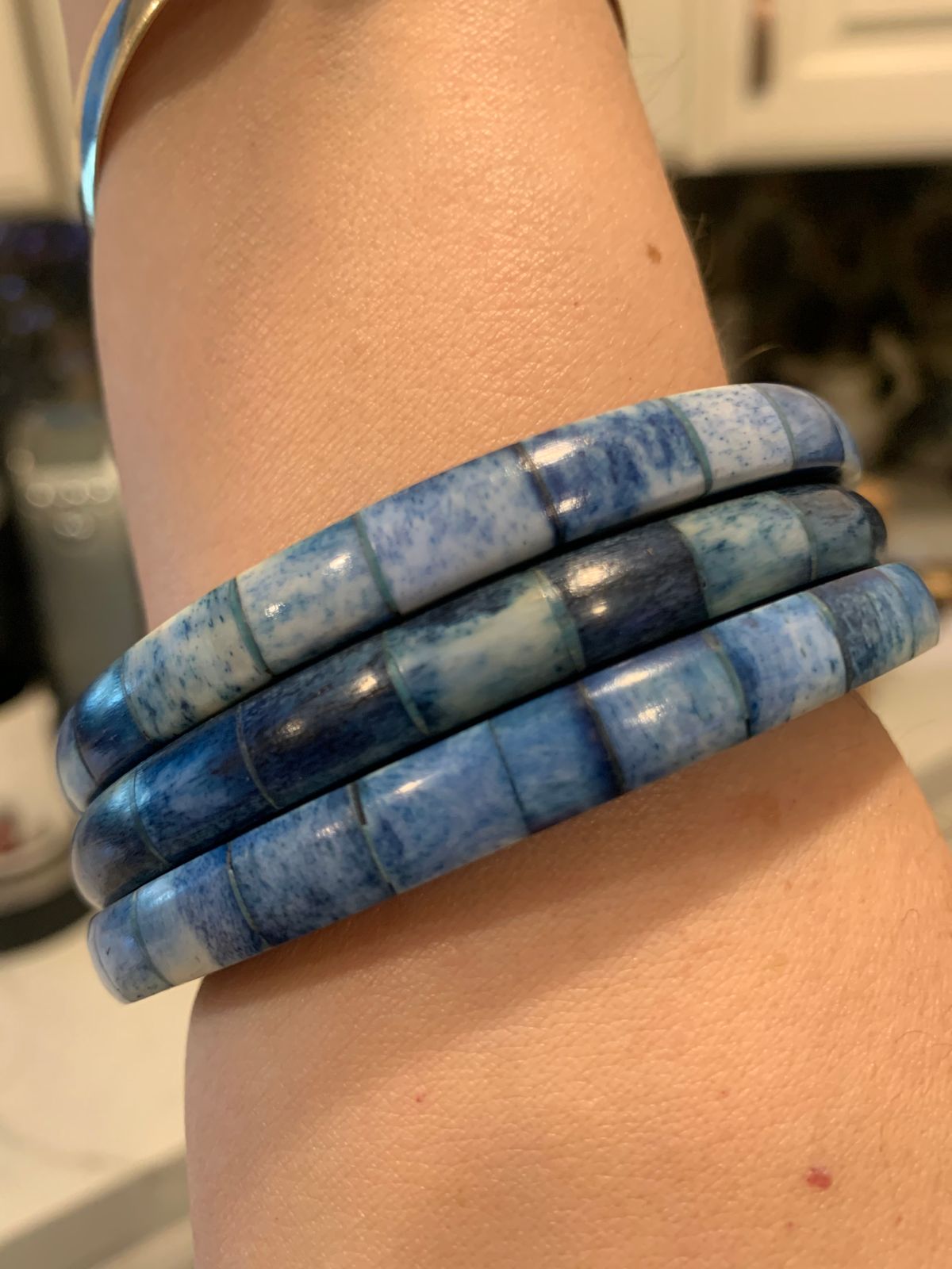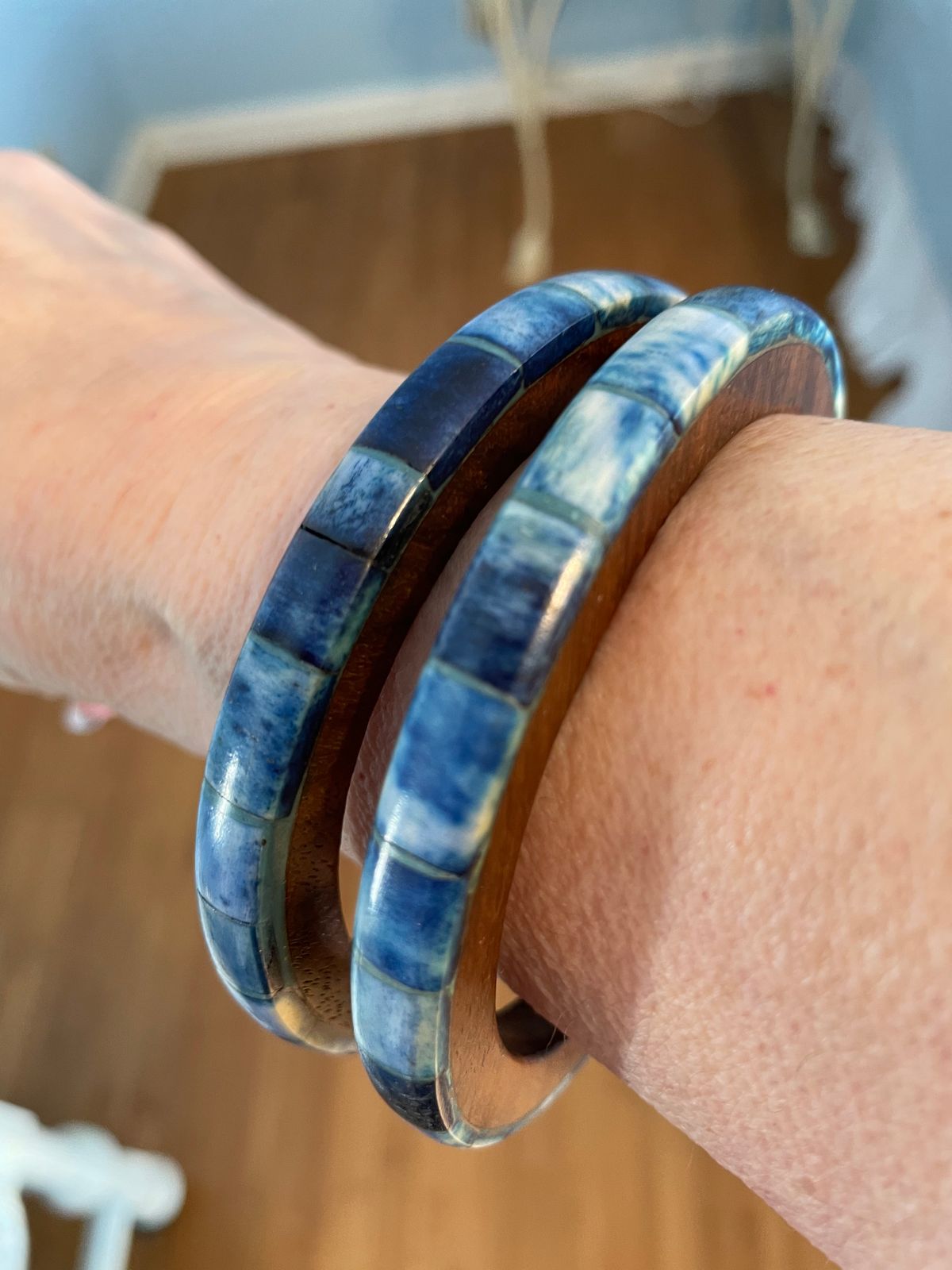 Blue Bone and Mango Wood Bangle Bracelets (Set of 3) - Blue Saga