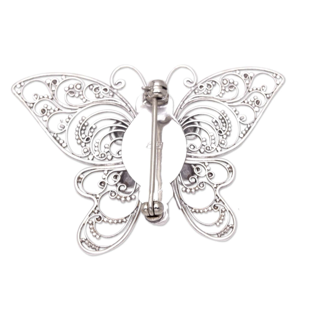 Sterling Silver Butterfly Filigree Brooch with Citrine Stone - Glowing Butterfly