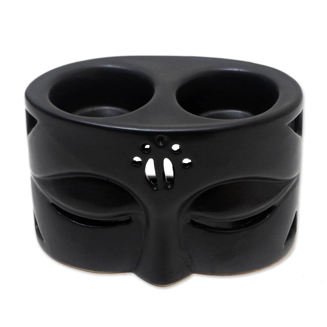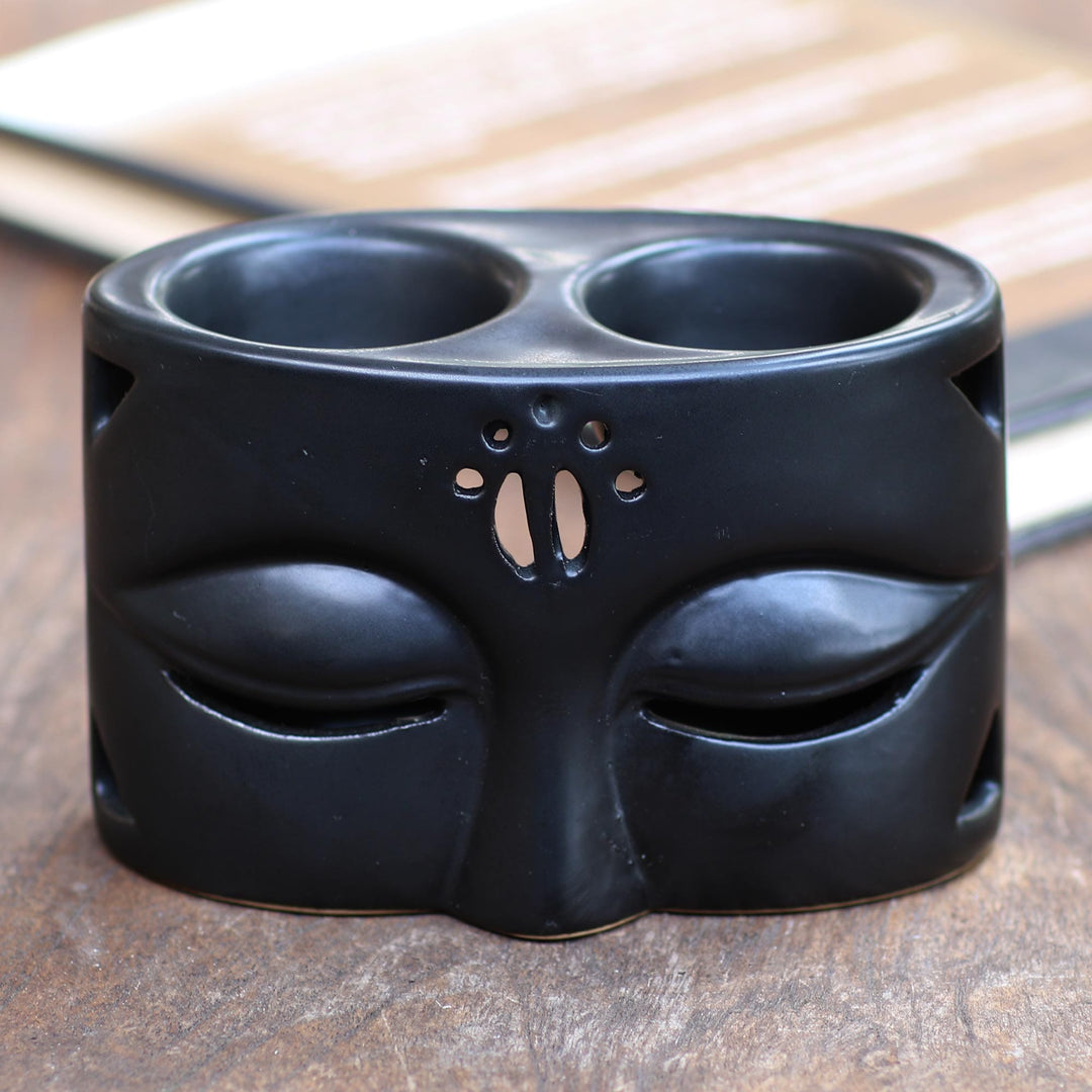 Fill your home with your favorite aroma using this unique oil warmer designed by Bali's Dewa Putra. The artisan crafts the warmer in the shape of Buddha's face with decorative openwork designs. Two spaces at the top of the warmer can also hold tealight candles with a maximum two inch diameter.