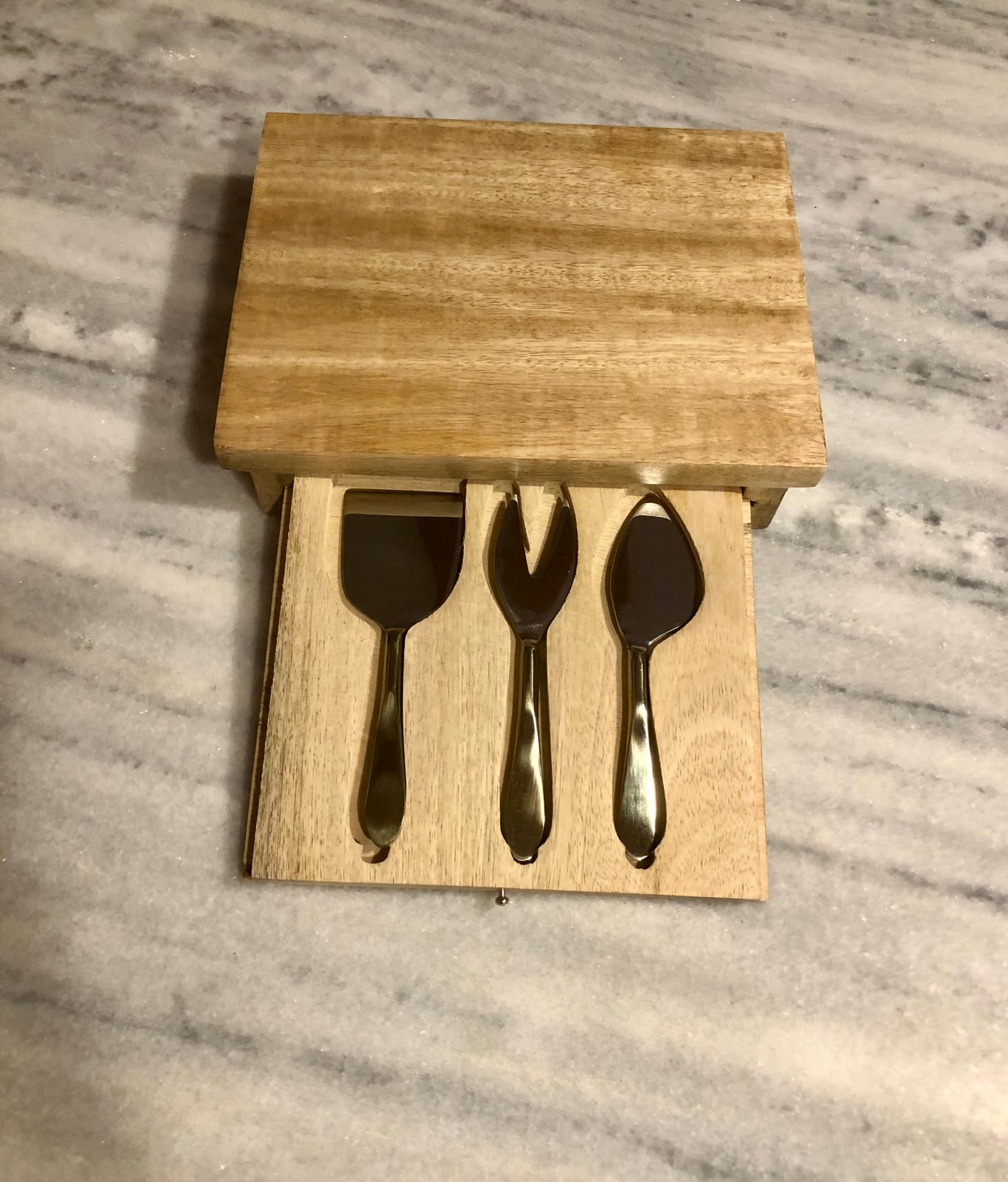 This charcuterie board and cheese knives set is perfect for entertaining or just for your own use. Delicately slice your favorite foods on this board and serve.