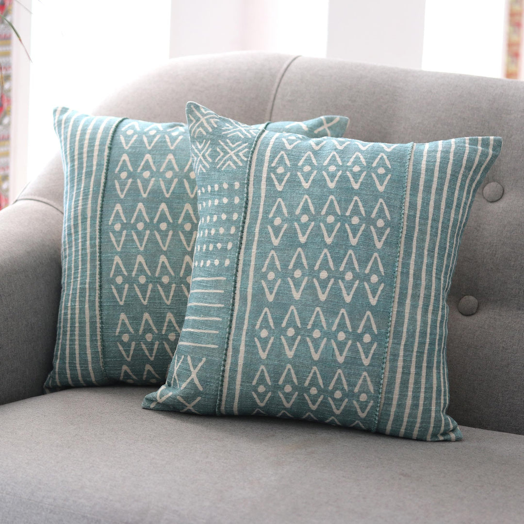 Cotton Cushion Covers with Geometric Patterns (Pair) - Jade Sea