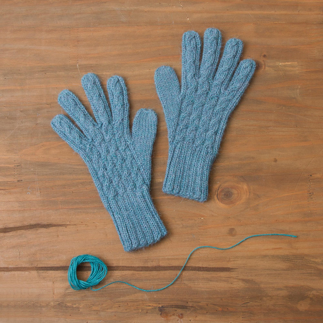 100% Alpaca Knit Gloves in Light Azure from Peru - Winter Delight in Light Azure