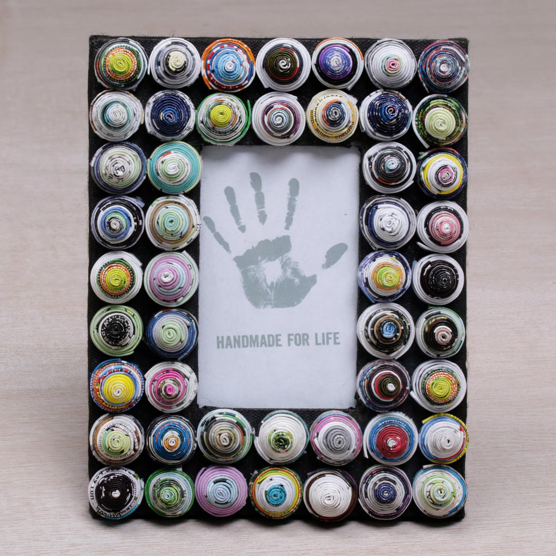3x5 Recycled Paper Photo Frame with Circle Motifs - Colorful Shrines