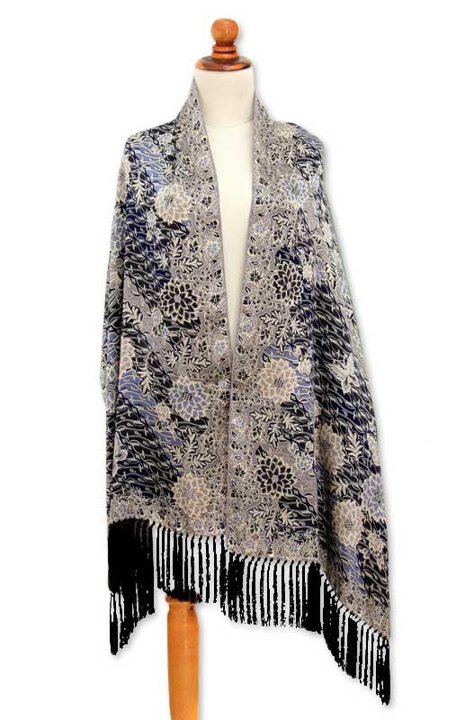 The world bursts into bloom with the arrival of spring, enticing butterflies to fragrant flowers. Its enchantment is captured in mesmerizing batik motifs. From Melati's Collection, this extraordinary shawl is created of pure silk. The elegant wrap is beautifully presented in a custom made gift box.