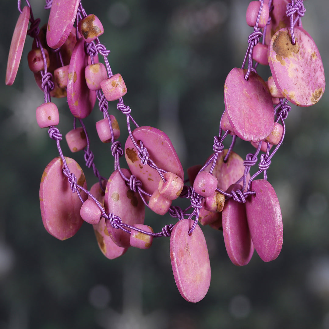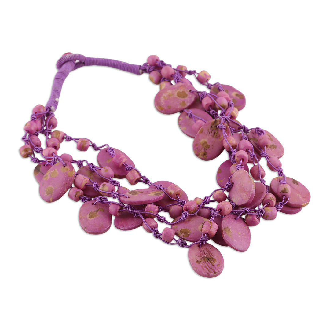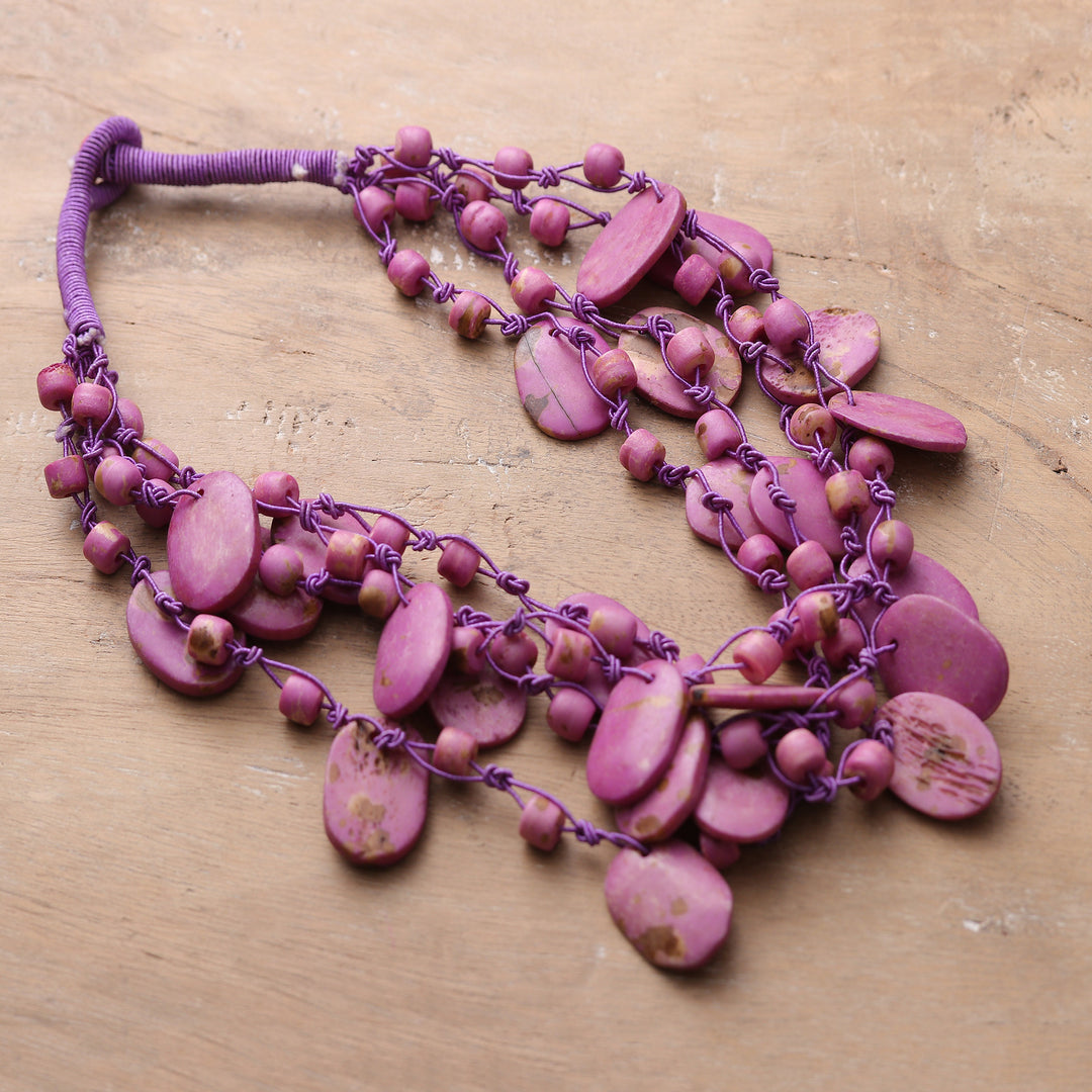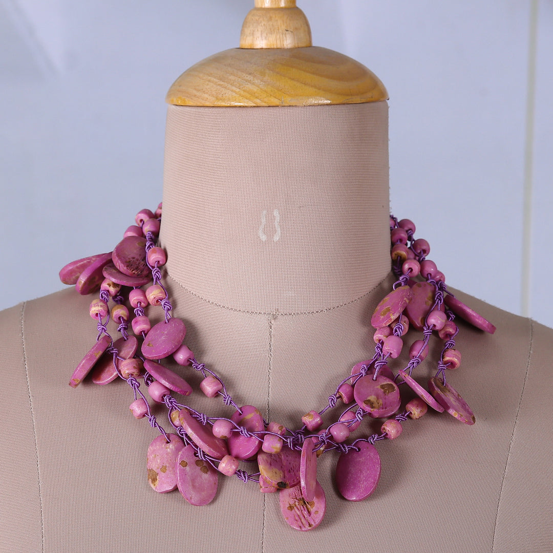 Handcrafted Bohemian Purple Cotton Beaded Strand Necklace - Enchanted Bohemian