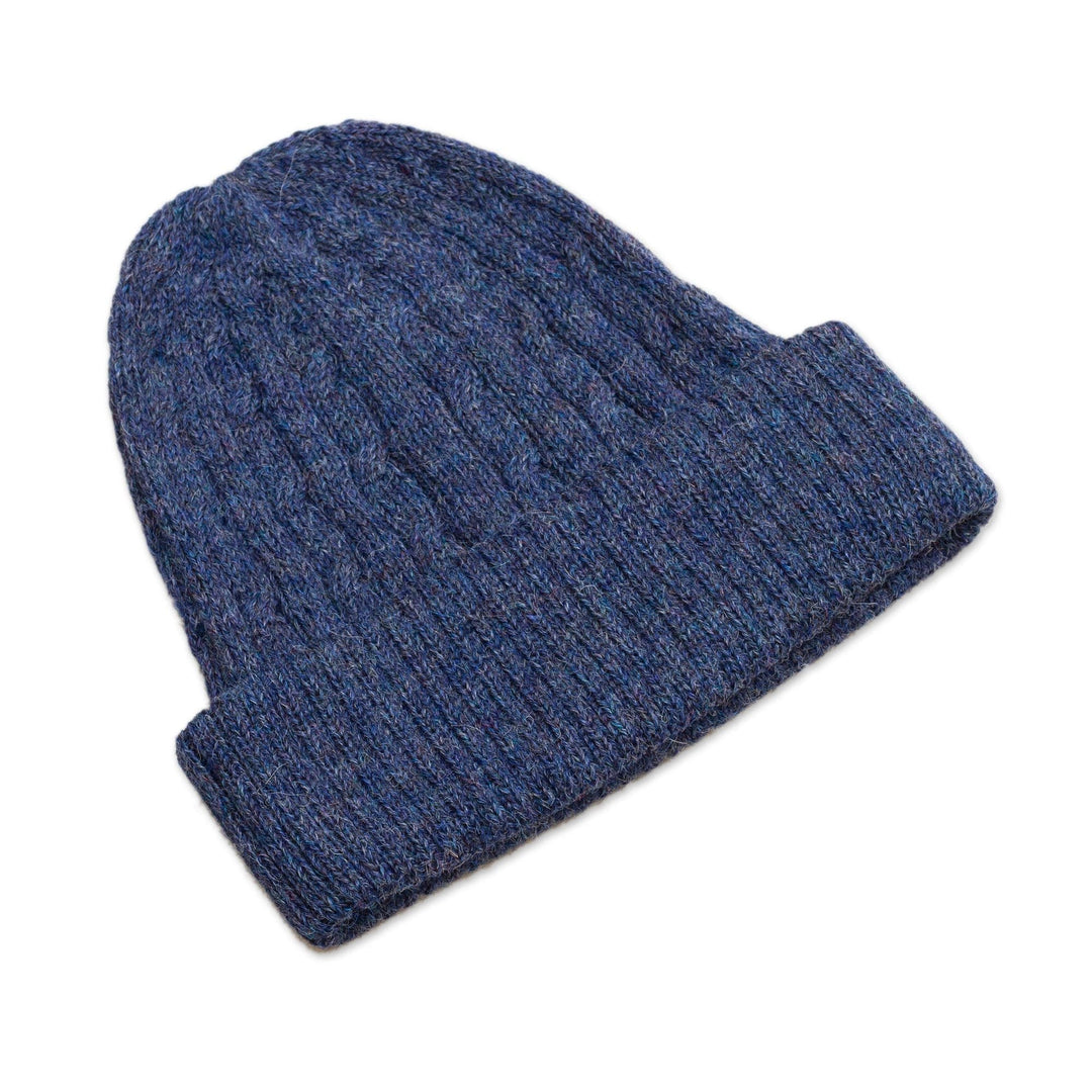 Indigo Blue 100% Alpaca Soft Cable Knit Hat from Peru - Comfy in Dark Blue
