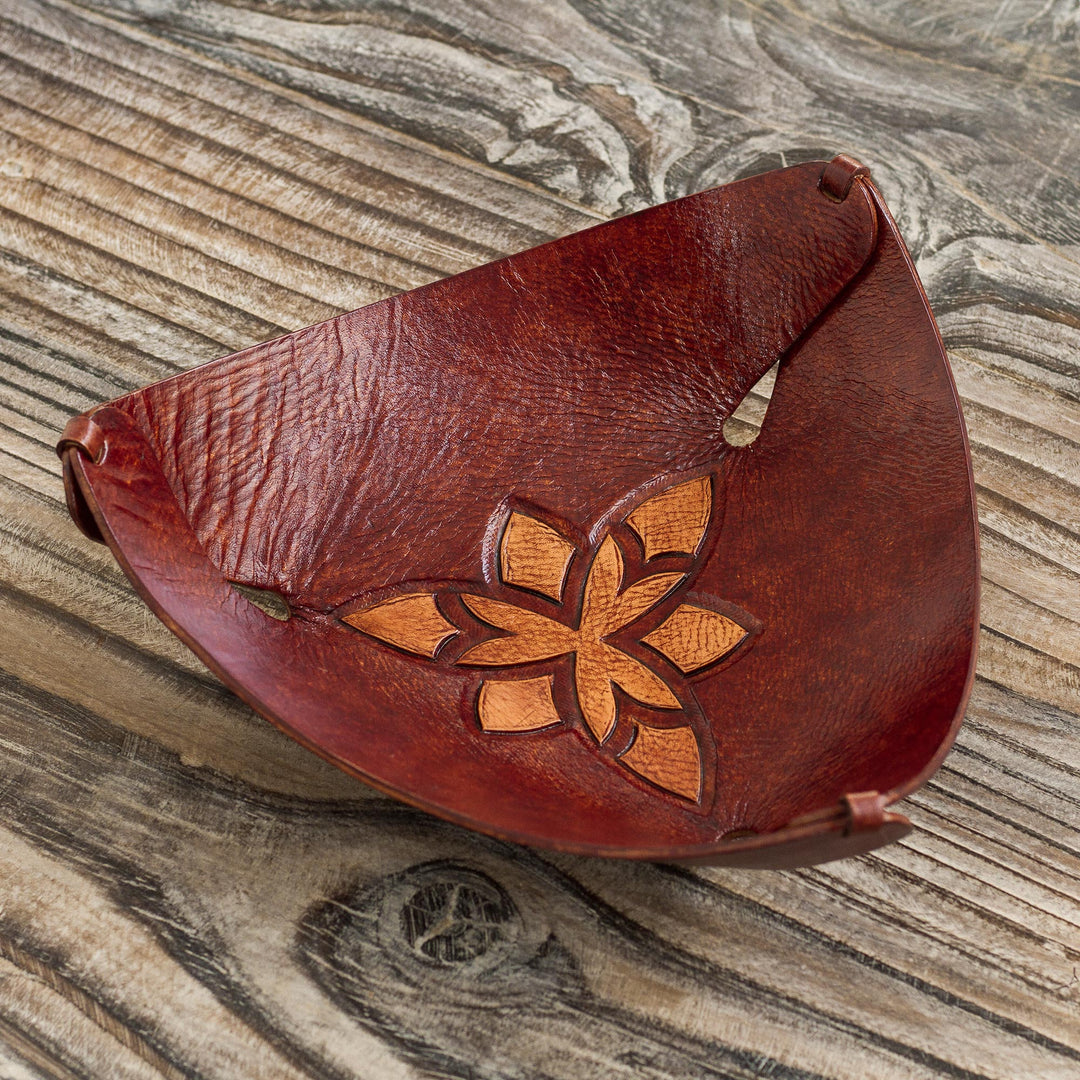 Unique Leather Catchall and Key Bowl Handcrafted in Peru - Goth Pyramid Tattoo