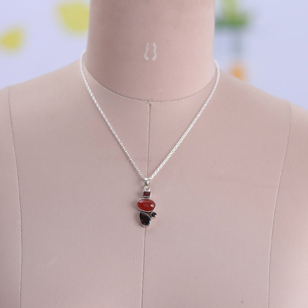 3-Carat Garnet and Natural Carnelian Pendant Necklace - Crimson Arcadia