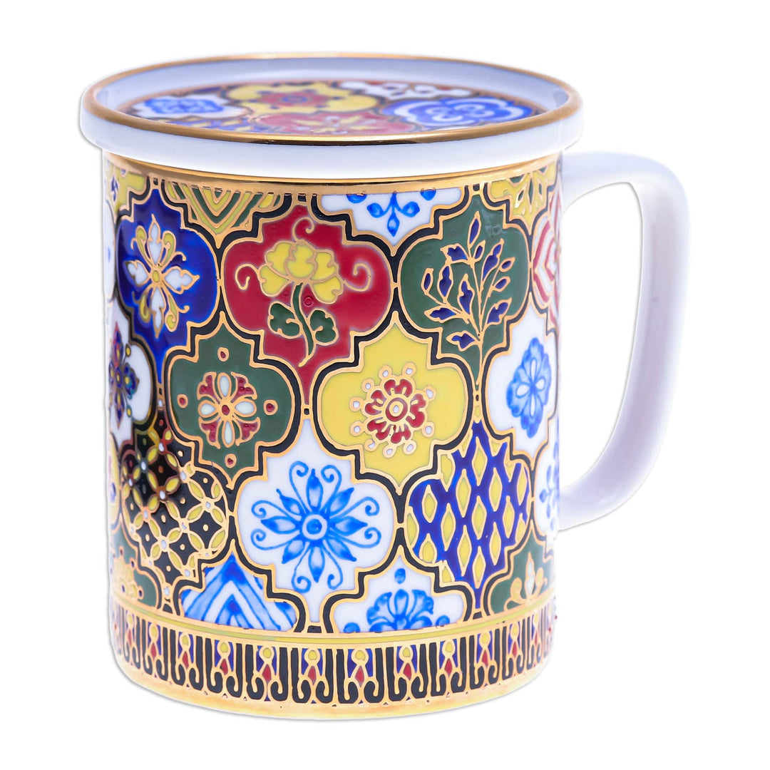 Gilded Hand-Painted Benjarong Porcelain Mug with Lid - Thai Splendor