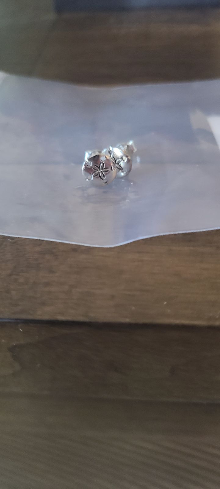 Hand Crafted Seashell Design Sterling Silver Button Earrings - Sand Dollar