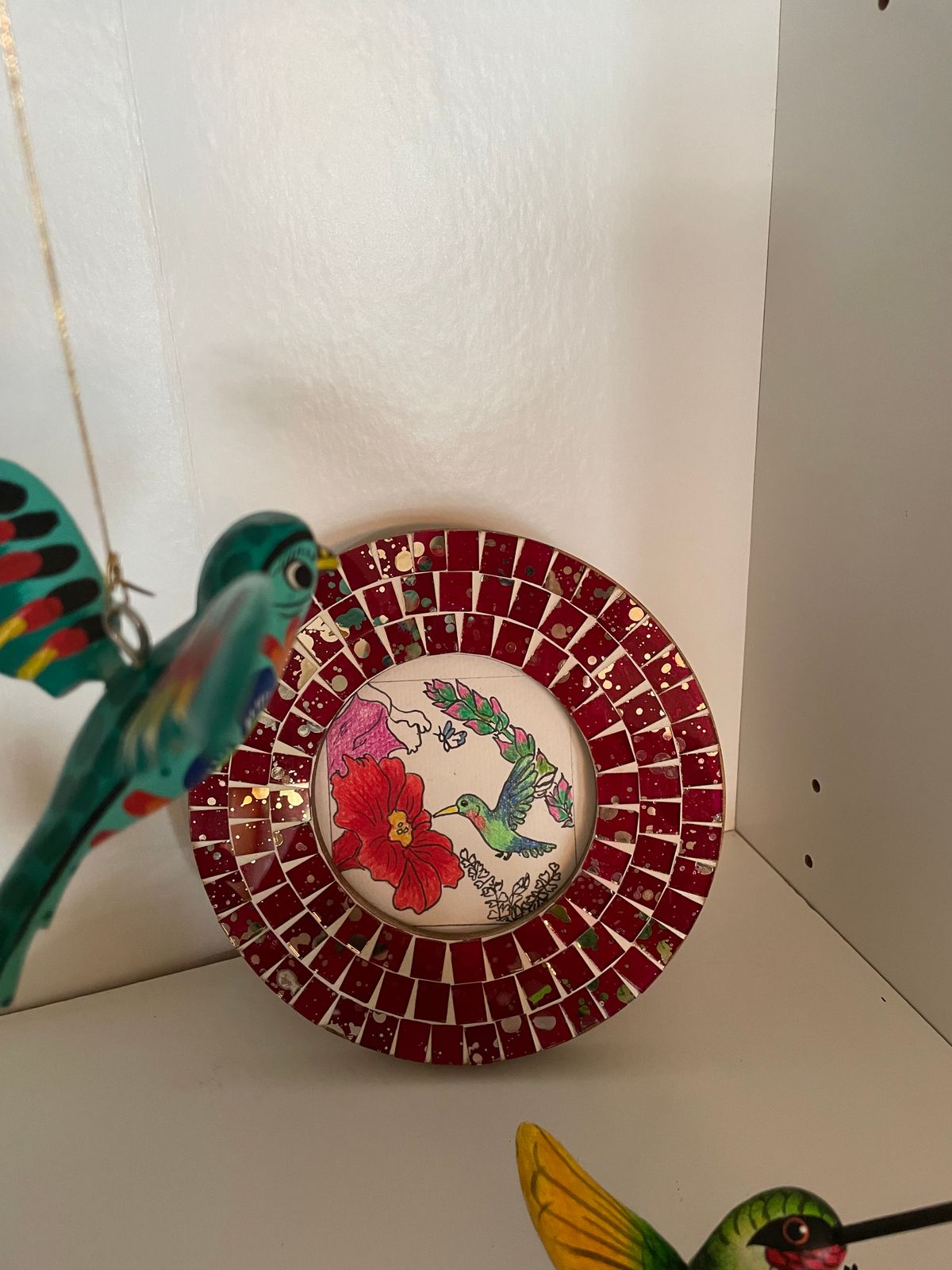 Handcrafted Round Red Mosaic Picture Frame (4 x 4) - Red Ruby