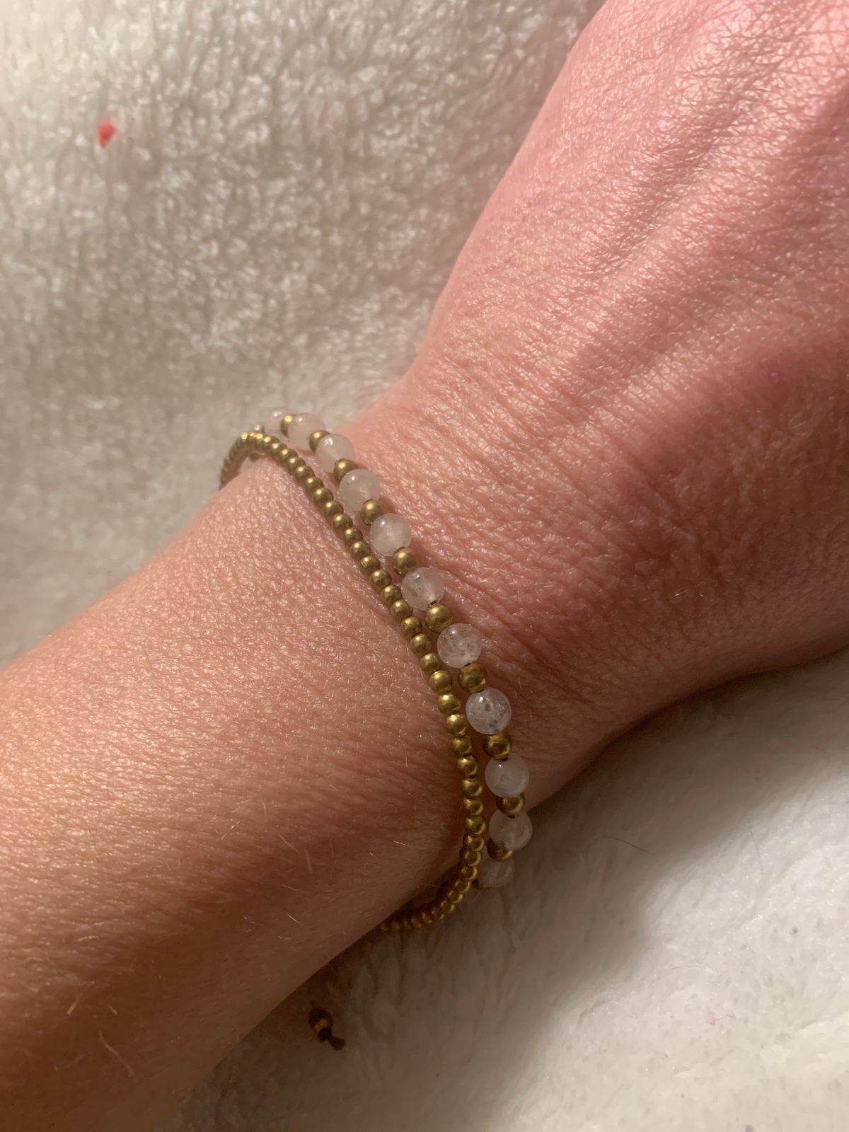 Handmade Rose Quartz Brass Beaded Bracelet with Loop Closure - Valley of Roses