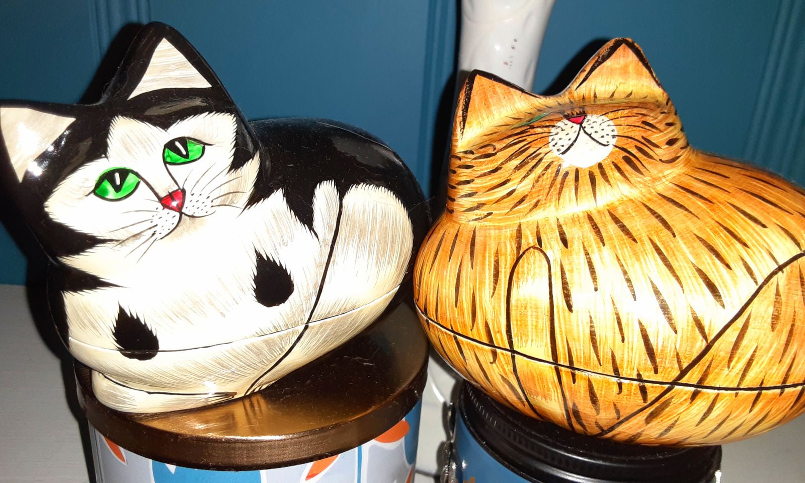 Cute little cat. The painting is lovely. Just using it for table decorations