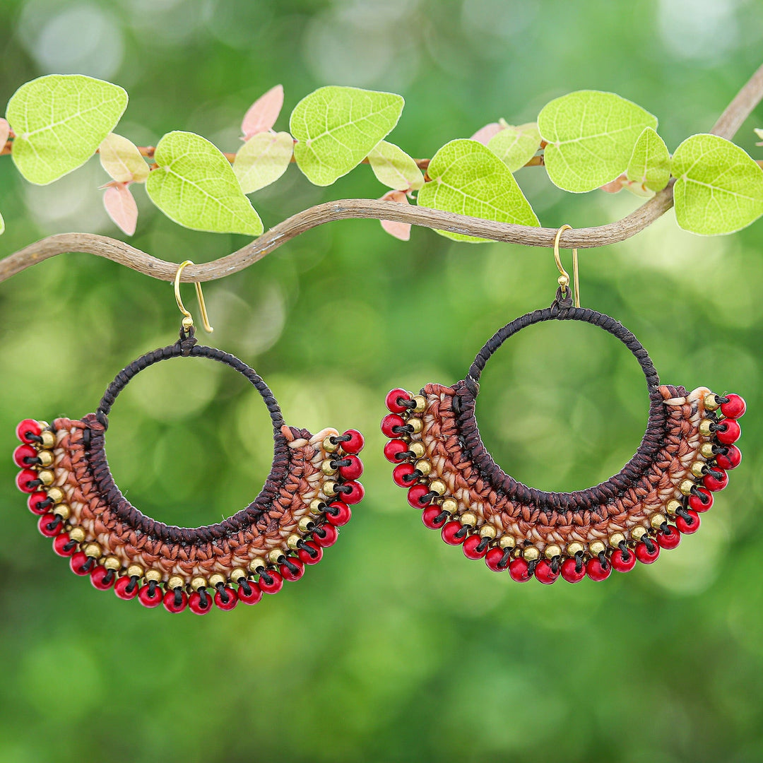 Brown Macrame Dangle Earrings with Red Magnesite Beads - Passionate Nimbus