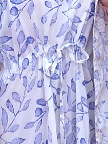 Hand Made Leaf-Themed Drawstring Cotton Caftan - Breezy Leaves