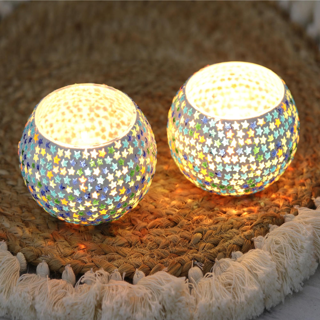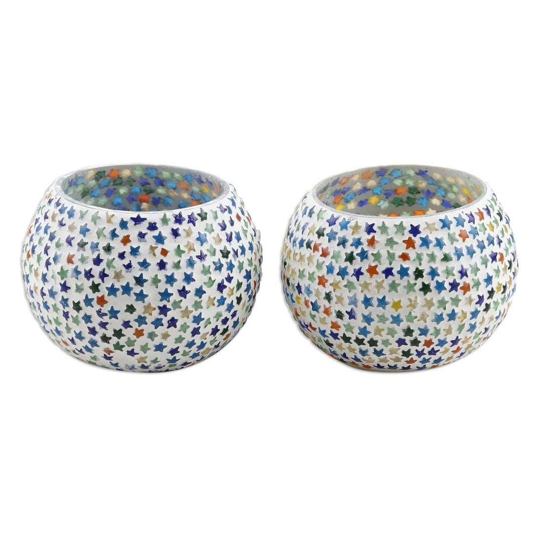Glass Star Mosaic Tealight Candleholders (Pair) - Starry Dazzle