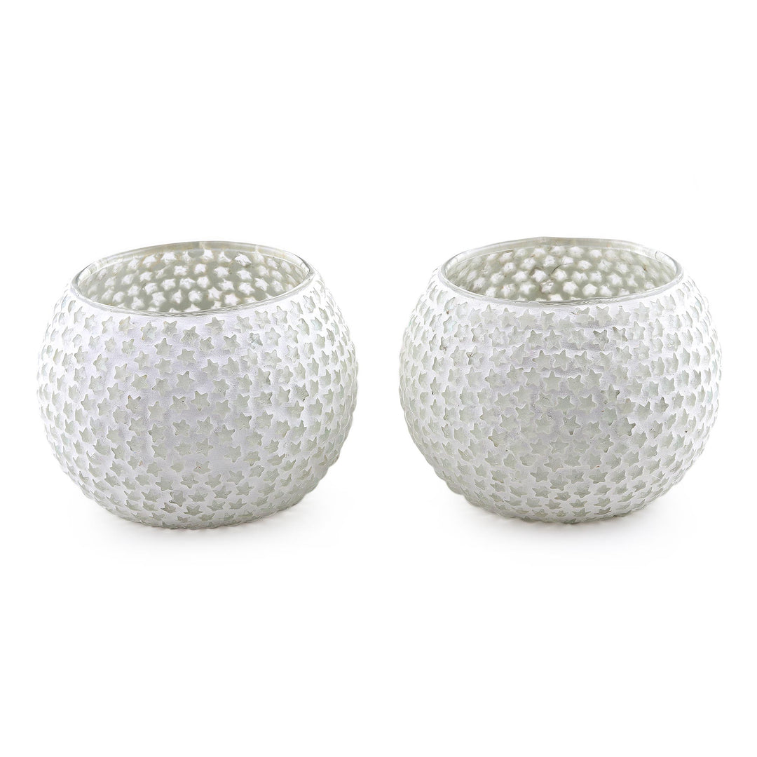 White Star Glass Mosaic Tealight Holders (Pair) - Festive Stars