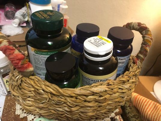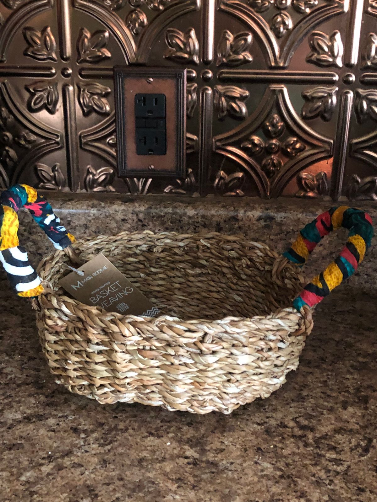 Gorgeous table basket handcrafted with assorted chindi handles offer tabletop display and organization in style.