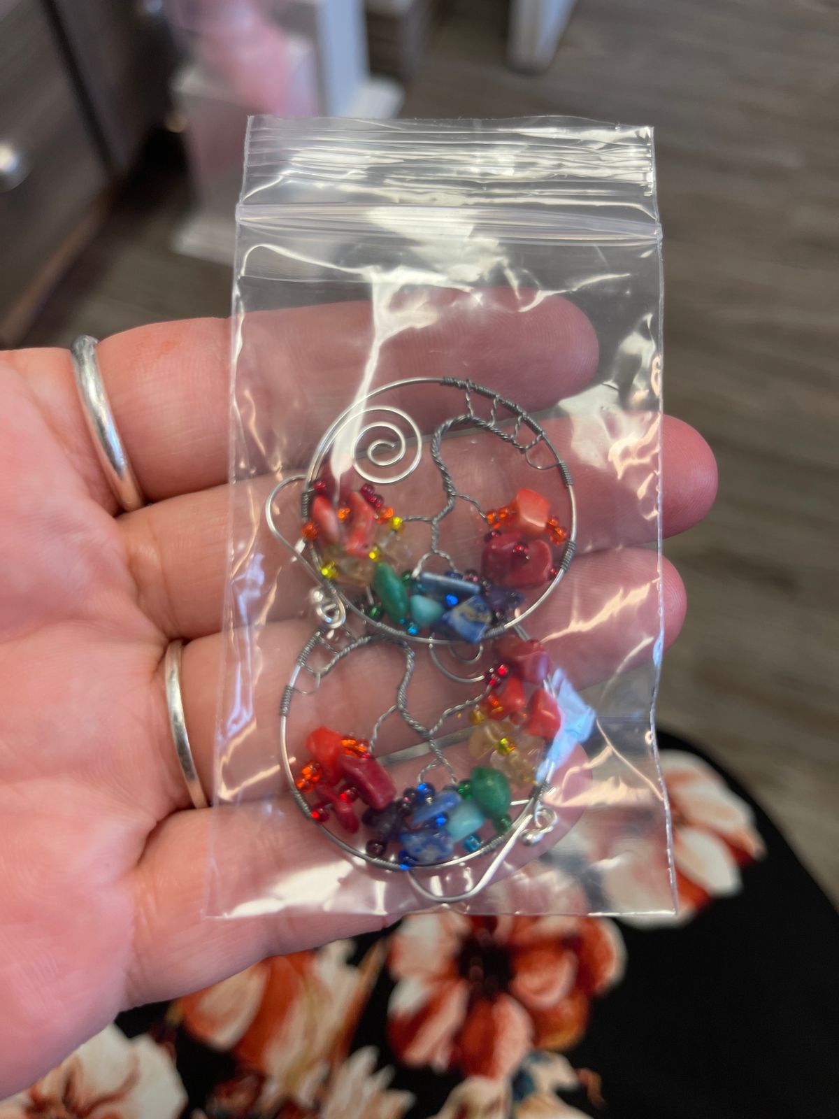 Tree of Life Themed Dangle Earrings With Beads and Gems - Crystal Tree of Life