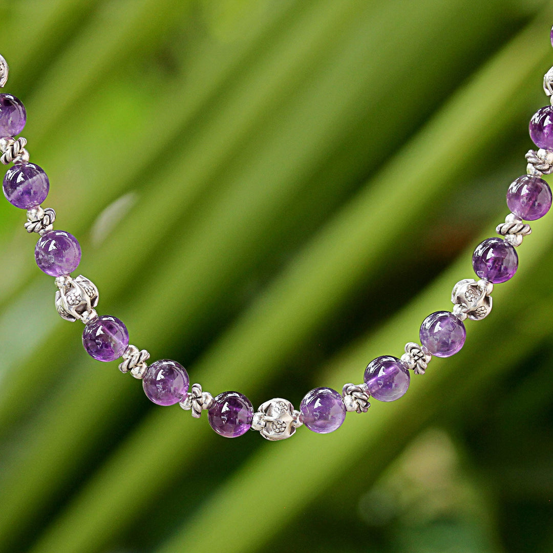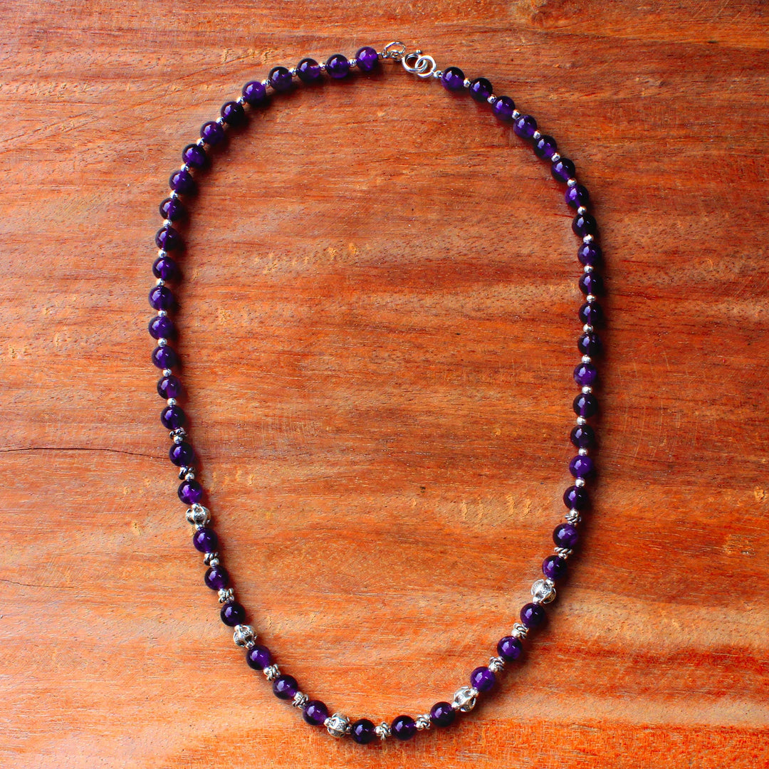 Amethyst and 950 Silver Beaded Necklace from Thailand - Simple Grace