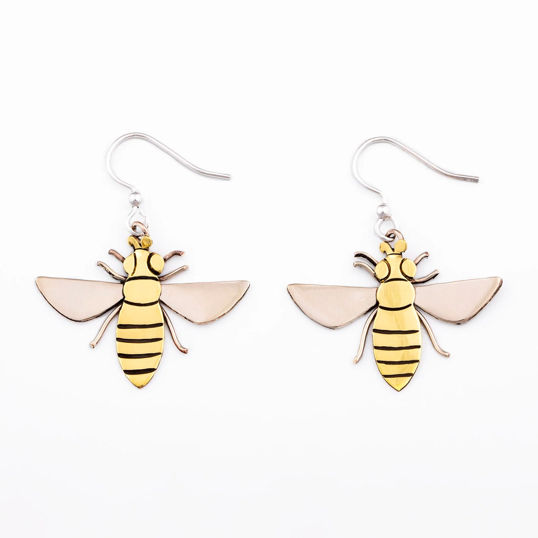 Unleash your inner queen bee with these buzzworthy dangle earrings from Mexico. Crafted by hand, these royal beauties showcase a regal queen bee, her body gleaming in brass and her wings shimmering in alpaca silver. A playful nod to nature and a sweet treat for bee enthusiasts, these earrings are the perfect winged companions for those who love to let their style soar.