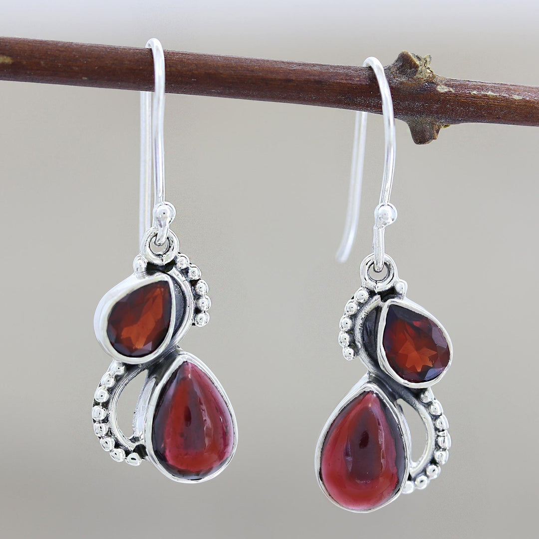 Faceted and Cabochon Garnet Dangle Earrings - Fireglow