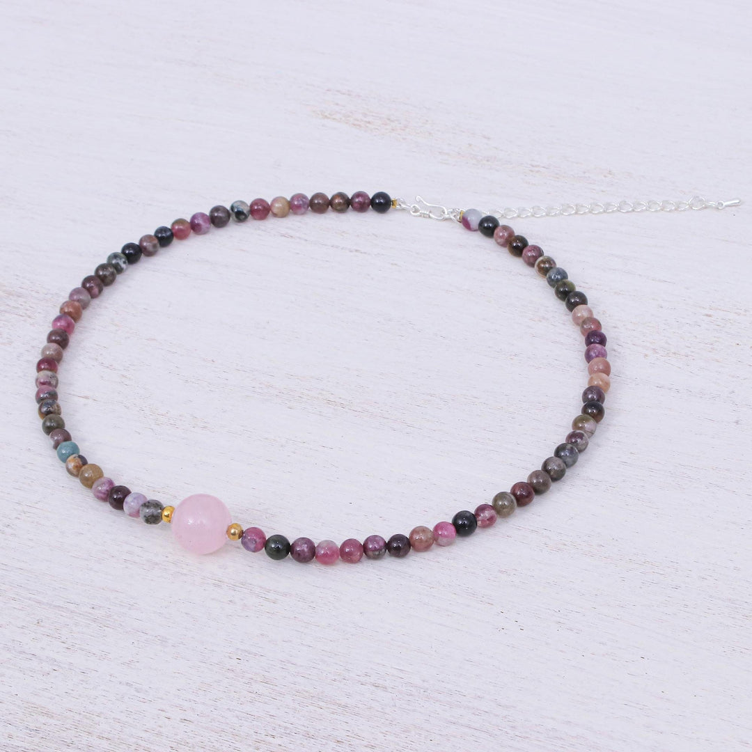 Hand Made Tourmaline and Rose Quartz Beaded Necklace - Precious Orb in Rose