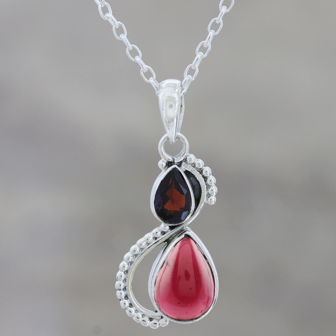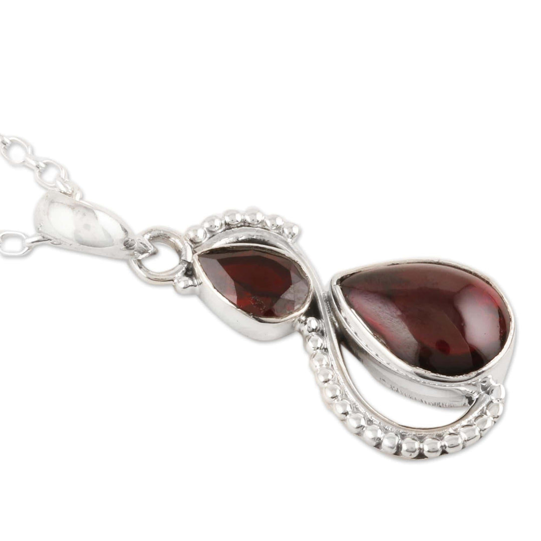 Cabochon garnets or faceted garnets? No need to choose with this beautiful pendant necklace from Shanker in India. Artisans set the glowing crimson gems in sterling silver with beaded details. The pendant centers a classic sterling silver cable chain