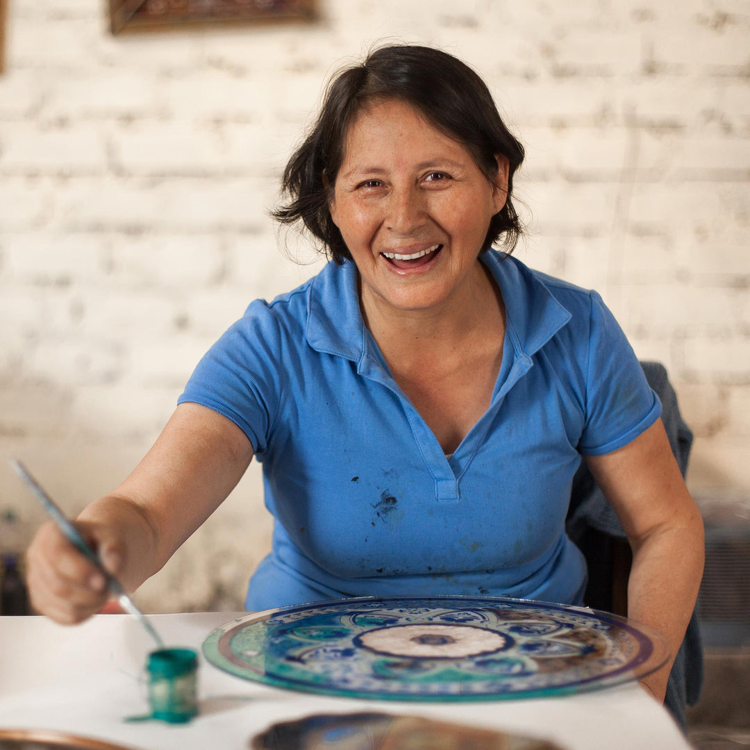 "I originally began to learn thanks to the influence of my husband's family. But over time, we've unified our abilities and work. Little by little, I learned to design and paint. It's so satisfying to be able to dedicate myself fulltime to what I enjoy most.