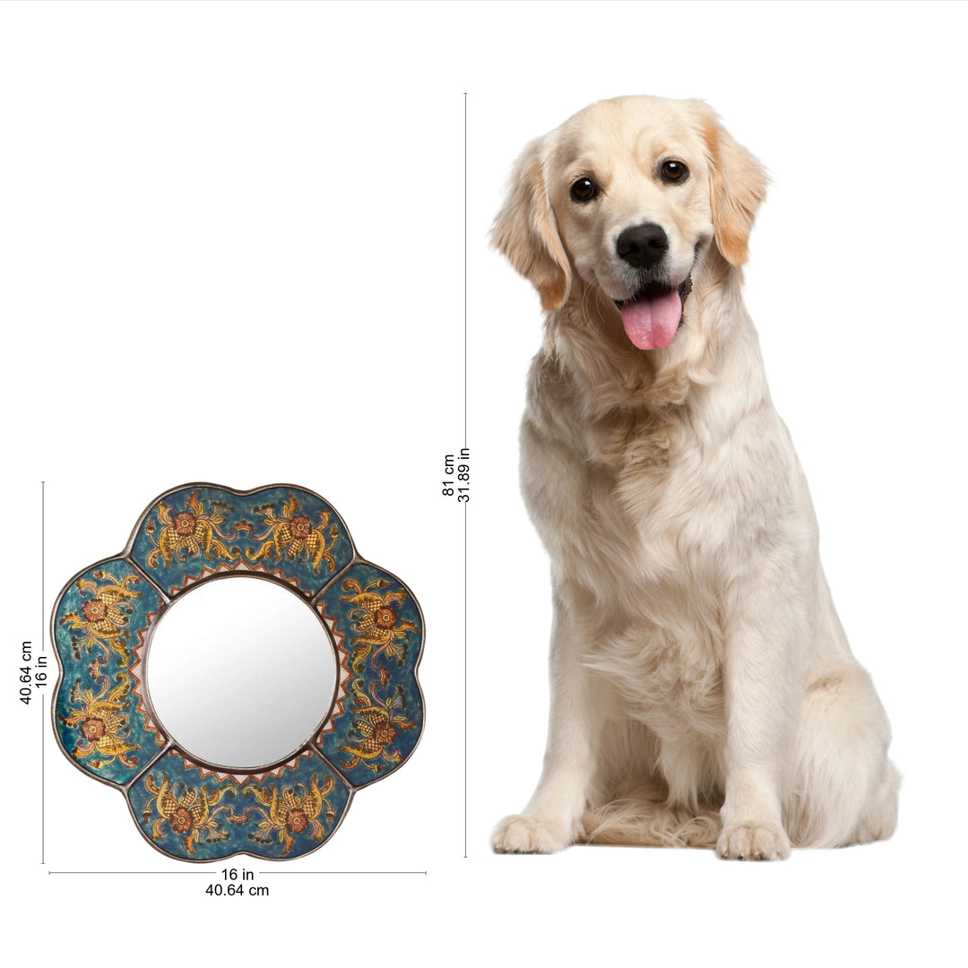 Andean Reverse Painted Glass Blue Floral Wall Mirror - Blue Cajamarca Blossom