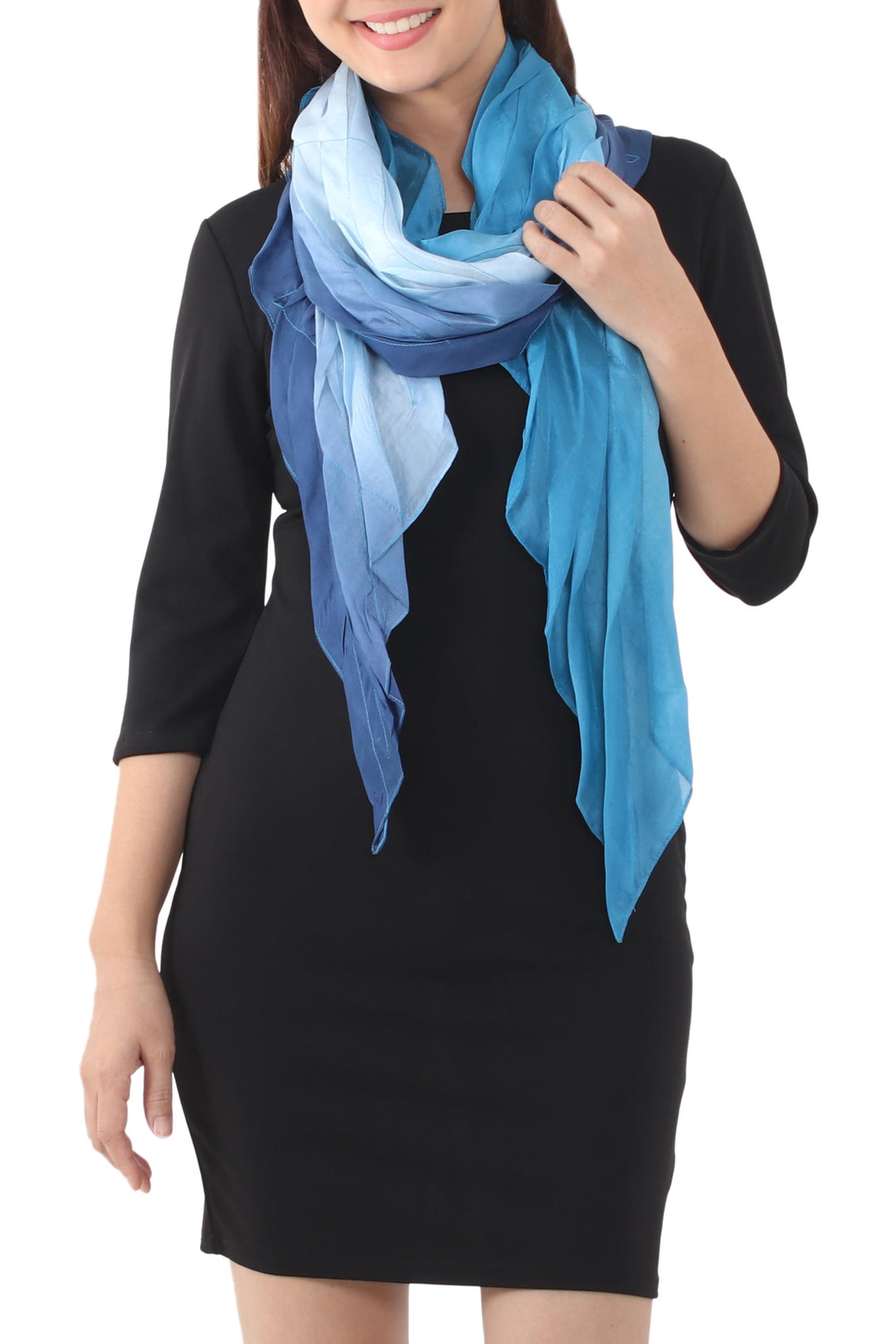 Hand Made Ombre Silk Scarf - Blue Magnificence