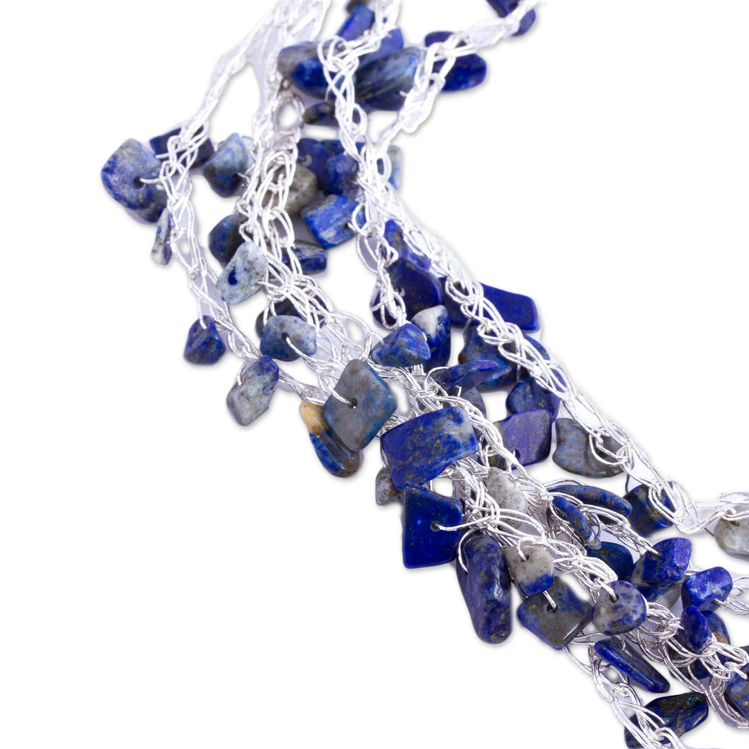 The deep blue hue of lapis lazuli stands out against the bright gleam of sterling silver in this elegant jewelry set. Handcrafted by Mexican artisan Alejandra Torres, the set includes a pair of dangle earrings and a beaded necklace marked by a crystal pendant.