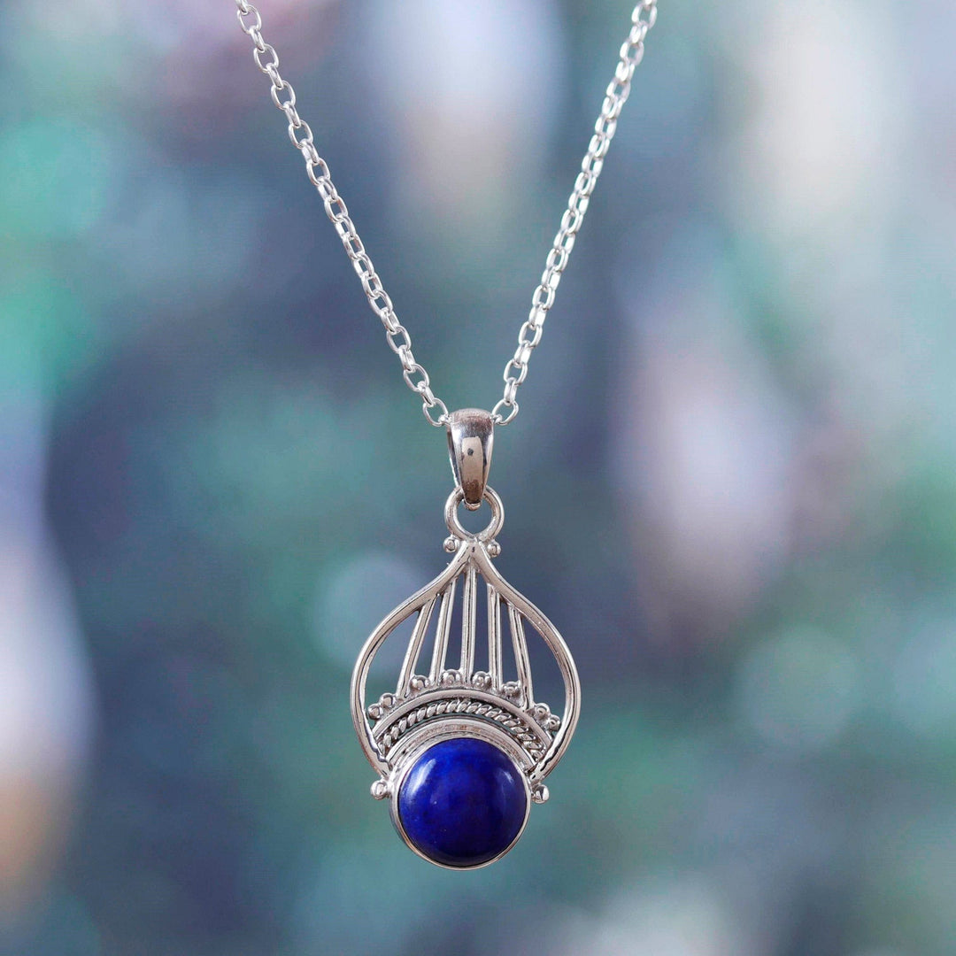 The supreme symbol of royalty and intellect crowns a sterling silver creation directly from the traditional lands of India, forming part of an exquisite piece of jewelry art. Shanker's necklace features a tiara-inspired pendant in a combination finish that enhances its distinguished aura, glowing splendidly along a lapis lazuli cabochon set at the center.