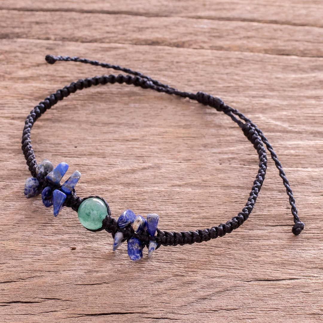 Quartz and Lapis Macrame Bracelet - Green Globe
