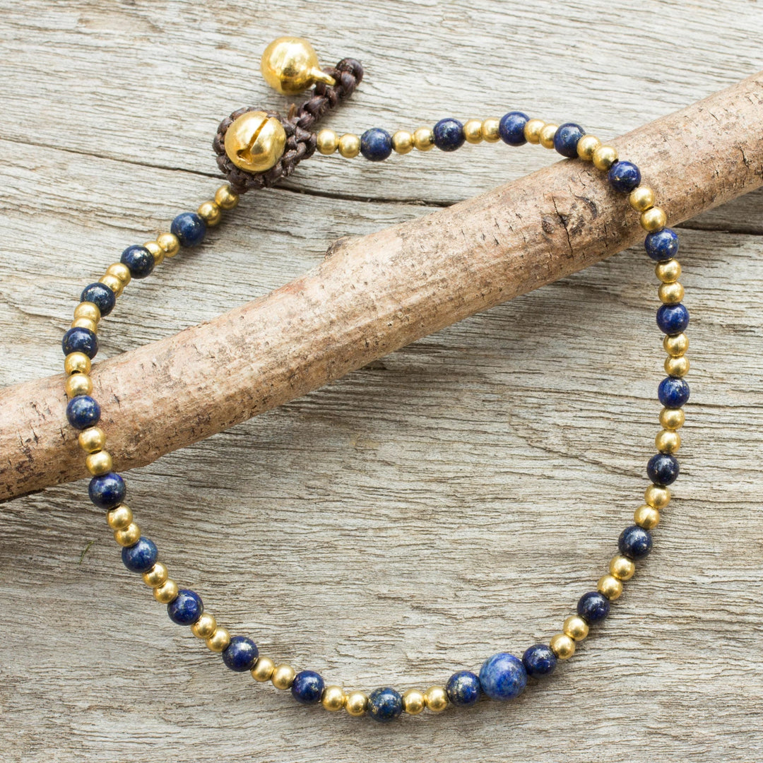 Single Strand Brass Bead Anklet with Lapis Lazuli - Cheerful Walk