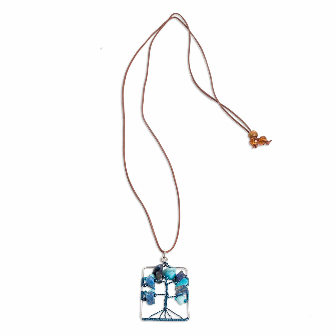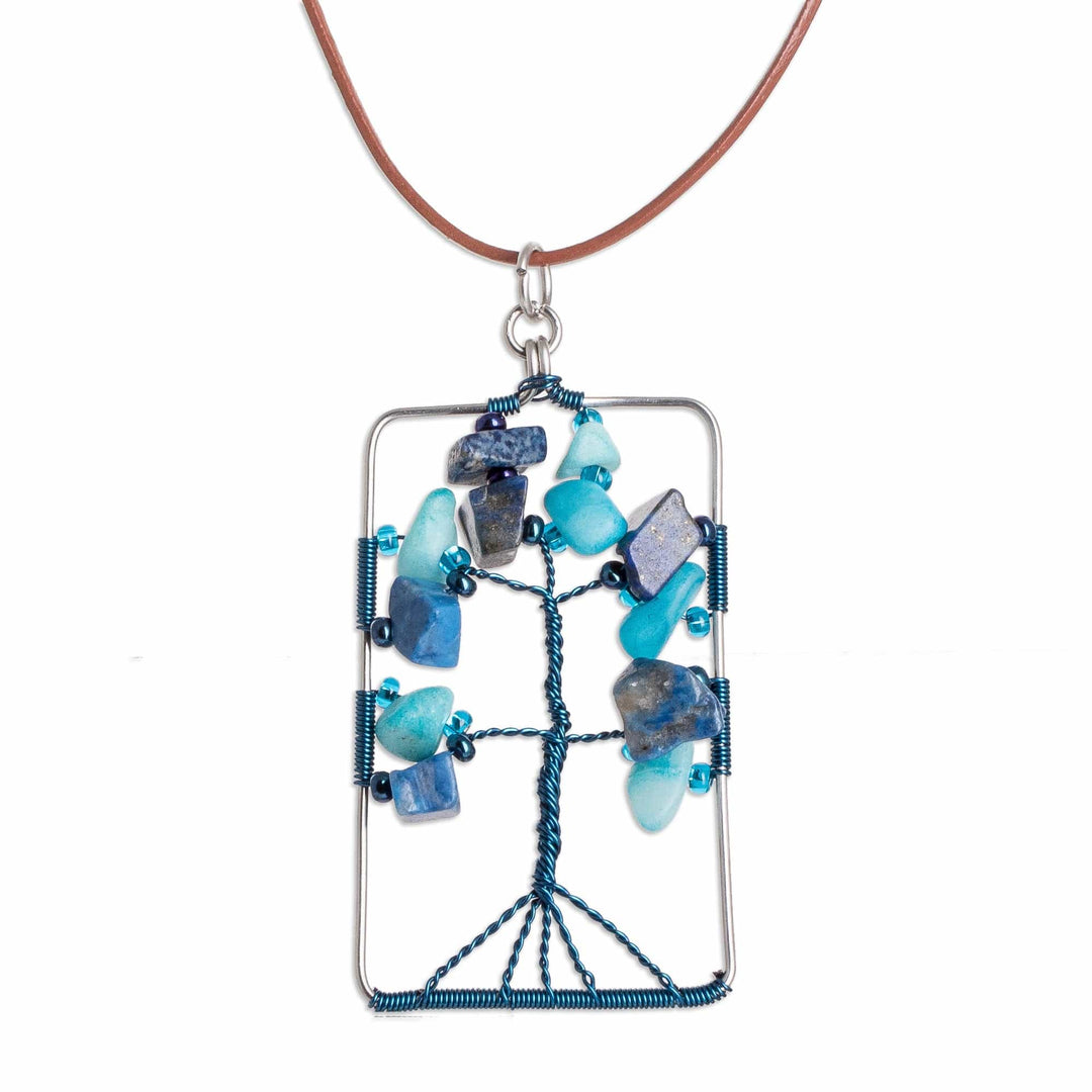 Tree-Themed Blue Lapis Lazuli and Quartz Pendant Necklace - Sylvan Blue