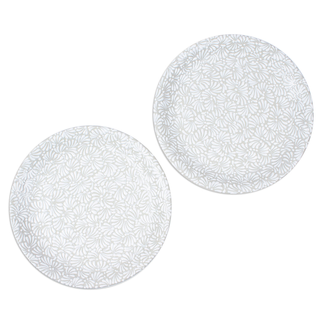 Luminous and tender flowers go all over a sublime design by Pedro Tecayehuatl from Mexico. As an expert in Talavera ceramic, the artisan handcrafts a pair of dinner plates featuring a palette of ivory and white hues, perfect for an elegant ambiance. On top of that, each has a polished finish that enhances its unique pattern.