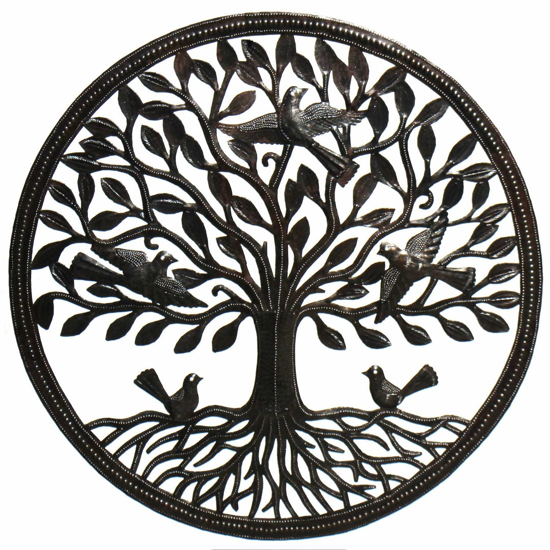 Given the handmade nature of this product please allow for minor variations. As the metal is recovered from recycled oil drums and colored through a burning process it will vary slightly in coloration. Typically the piece has a darkened steel patina. If handpainted, exact colors may vary, which speaks to the one-of-a-kind nature of each piece. Each piece of metal art whether painted or natural is coated with a layer of clear lacquer to help protect the metal.